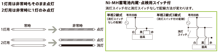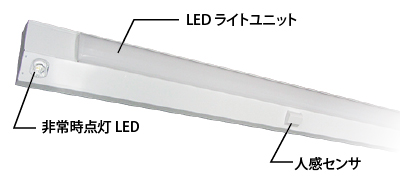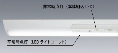 (平常時LEDライトユニット点灯・非常時本体組込LED点灯)