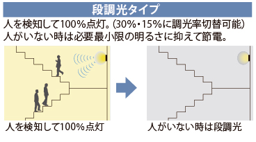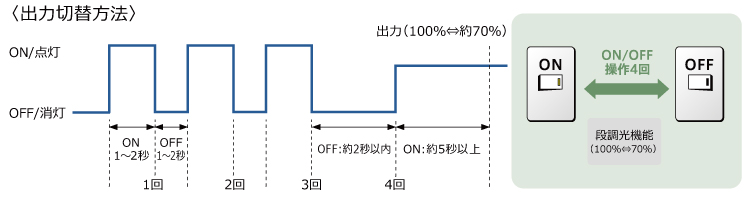 センサなしタイプは明るさ70%の段調光機能が使用できます。