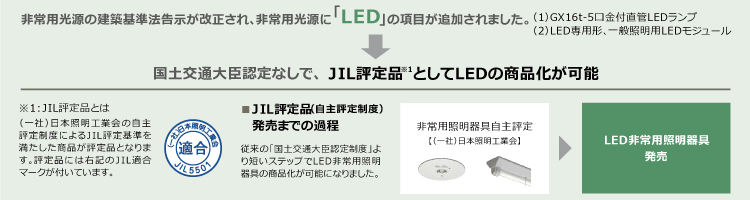 建設省告示の改正により、電源別置形非常用照明器具もLED化が可能になりました。