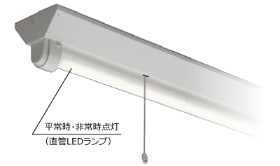 非常用の直管LEDランプが、平常時・非常時ともに点灯