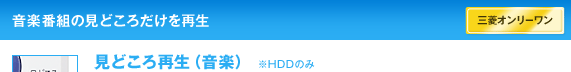 「見どころ」ボタンを押すと、スポーツ番組の録画リストを表示。録画リストを切り替えれば、音楽番組の歌や演奏シーンだけを自動再生できます。