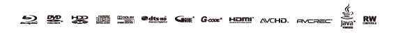 ●Blu-rayDiscおよびロゴは商標です。●Dolby、ドルビーおよびダブルD記号はドルビーラボラトリーズの商標です。●DTSはDTS, inc.の登録商標です。DTSのロゴ及びシンボルマークは米国DTS,Inc.の商標です。●ロヴィ、Rovi、Gガイド、G-GUIDE、Gガイドロゴ、Gコード、G-CODE、およびGコードロゴは、米国Rovi Corporationおよび/またはその関連会社の日本国内における商標または登録商標です。●HDMI、HDMIロゴ、およびHigh-Definition Multimedia Interfaceは、HDMI Licensing LLCの商標または、登録商標です。●"AVCHD"および"AVCHD"ロゴはパナソニック株式会社とソニー株式会社の商標です。●AVCRECおよびロゴは商標です。●JavaおよびすべてのJava関連のマークは、米国およびその他の国における米国 Sun Microsystems, Inc.の商標または登録商標です。
