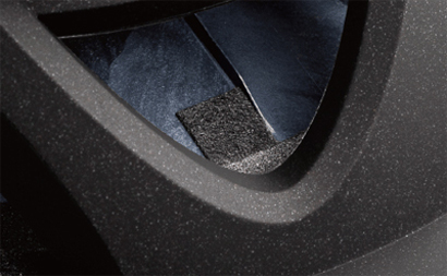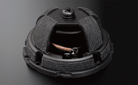 Wライン・ソリッドライン構造が持つ特性をさらに引き出すために、4箇所のソリッドラインの直近にそれぞれ制振素材を貼付しています。さらにキャップ裏にも貼ることで不要共振を抑え聴感上のS/N比を向上させています。このこだわりはDS-SA1000でも同様に行なっている技術です。