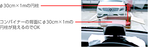 」を満たすか。(HUDを取り付ける運転席直前部について、HUD取付後にφ30cm×1mの円柱が視認できるか)