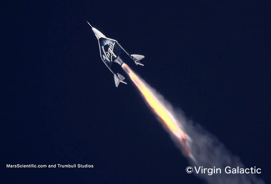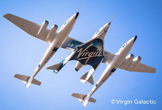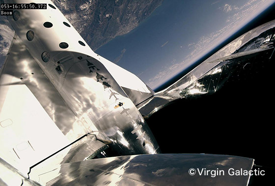 宇宙船スペースシップ2は乗客6人とパイロット2人が乗る8人乗り。3日間の訓練を受けた後、米国ニューメキシコ州にある専用宇宙港スペースポートアメリカから離陸します。ロケットのように垂直に発射されるのではありません。宇宙船は母船ホワイトナイト2につりさげられて飛行機のように、水平に離陸します。高度約15㎞まで上昇したら宇宙船を分離。マッハ3.3で宇宙空間を目指します。体重の約3.3倍の重力が短時間かかりますが、ぜひ窓の外の大気の色の変化に注目してください。