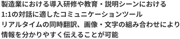 会話内容を翻訳して画像・マニュアル・図面に載せることが可能、様々な業務シーンで汎用的な活用が見込める。