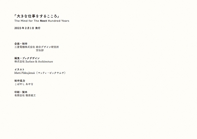 - 三菱電機は2021年に創立100周年を迎えました。その間、社会は目まぐるしく変化し、現在は生活者の価値観も多様化しています。大きな節目を前に、次の100年、三菱電機が取り組むべきこと、果たすべき役割は何なのかを探る活動を、統合デザイン研究所の自主研究として2018年から始めました。