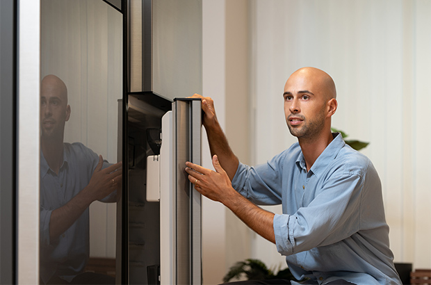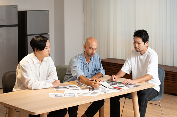 - 冷蔵庫はどの家庭にもあって、家族全員が使う製品です。そんな製品をデザインすることには大きなやりがいがあります。外観と内部、両方にデザイナーが深く関われるのも冷蔵庫ならでは。シンプルな箱のように見えて、実は奥が深く、それもまたやりがいに通じるのです。普段から見慣れた製品でも、ユーザーの環境や使われ方をつぶさに観察すると、常に発見や驚きがあります。そこに新たな課題を設定し、デザインで解決する醍醐味を楽しみながらこの仕事に向き合っていきたいと思います。