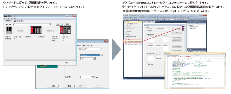 これまで面倒で複雑だったシリアル通信やEthernet通信を行うアプリケーションの開発が、MX Componentを使用することでとても簡単になります。