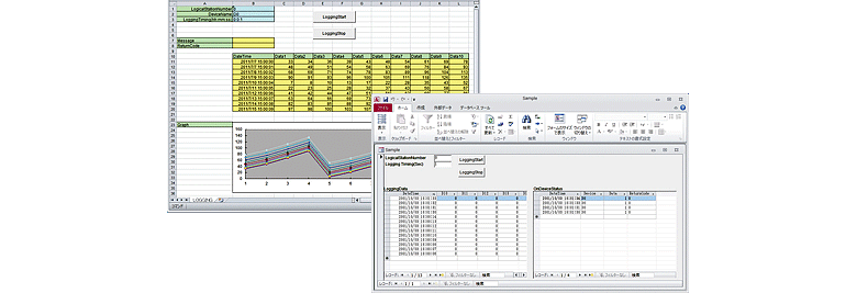 VBAでプログラミングを行うことにより、Excel®およびAccess®の機能を利用し、リアルタイムでグラフ表示を行うアプリケーションを作成できます。