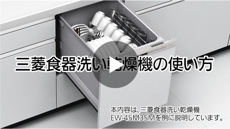 浅型 EW-45M3シリーズ 分割フラップ&シャワーミスト搭載 浅型 EW-45M3シリーズ 製品を比較する 製品トップ 製品仕様 カラーナビ食器かご 特定食器の位置を色分けし、入れる場所がわかりやすい。 分割フラップ 上かごが分割するので、食器の出し入れがラクにできます。 シャワーミスト ミストが食器汚れに浸透。さらに高温洗浄水の間欠噴射で汚れをふやかし、浮かせてはがしやすい状態を作ります。 ターボ噴射 噴射角度や方向が変化し、ガンコな汚れもムラなく洗浄。 低騒音設計 キッチンに隣接するリビングやダイニングでも、洗浄中の運転音が気になりません。 除菌洗浄・除菌乾燥 高温でパワフル洗浄。仕上げはたっぷりの温風でスミズミまでしっかり乾燥します。 EW-45M3シリーズのご使用方法を動画で確認 食器洗い乾燥機の使い方 食器洗い乾燥機のお手入れ 食器洗い乾燥機の使い方 × 食器洗い乾燥機のお手入れ × 三菱ビルトイン食器洗い乾燥機一覧 深型 EW-45LD1MU EW-45MD1シリーズ EW-45RD1シリーズ 浅型 EW-45L3SM EW-45M3シリーズ EW-45R3シリーズ