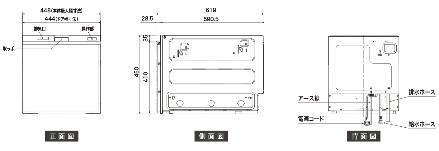 | 給・排水ホースの長さ | 給水ホース長さ:約1,000mm 排水ホース給水ホース長さ:約1,000mm | ||||||