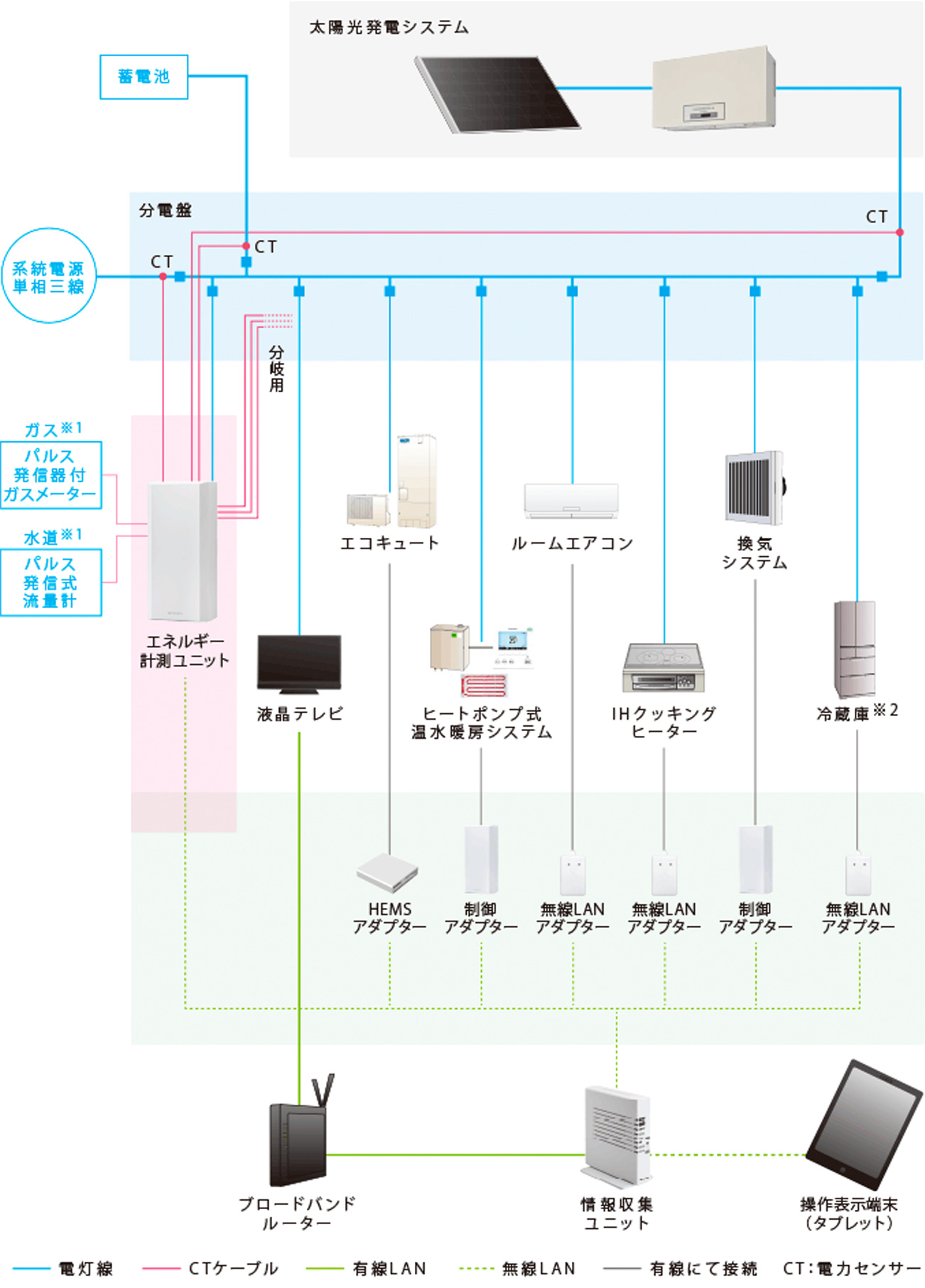 ●情報収集ユニットとエネルギー計測ユニットの間は有線LANでも接続が可能です。