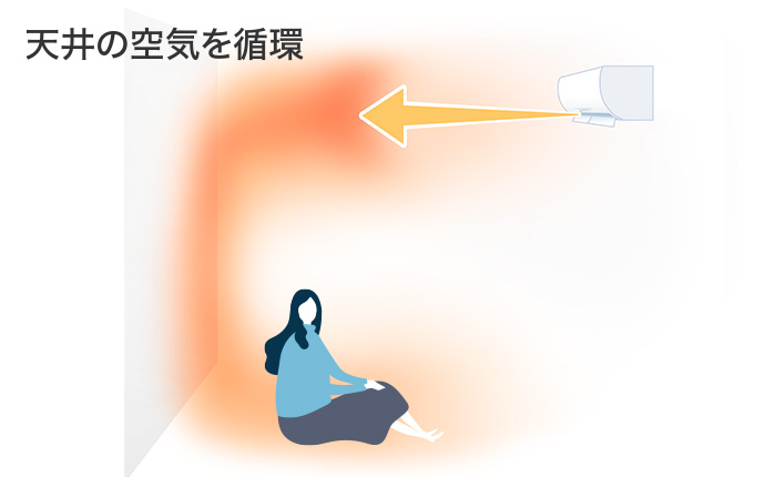 体感温度にあわせて2つの運転を自動で切り替え、エアコンと扇風機/サーキュレーターのいいとこどりで省エネ。