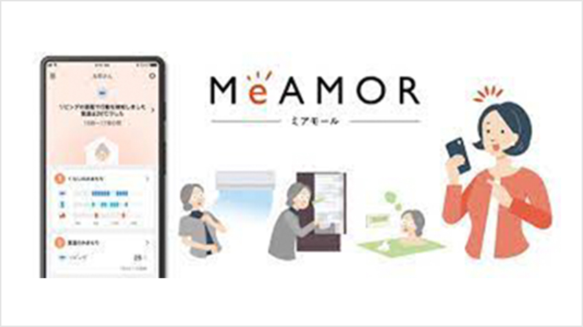 また高齢社会に対しては、三菱電機のMeAMOR(ミアモール)というサービスで寄りそっていきます。これは冷蔵庫のサービス例でいうと、離れて暮らすご家族の冷蔵庫の開閉を知ることができるというもの。普段、特に意識せずおこなう「冷蔵庫の開閉」に着目し、離れて暮らす高齢の方の日々の健やかな生活を、プライバシーをまもりながら自然に感じとることができるんです。
