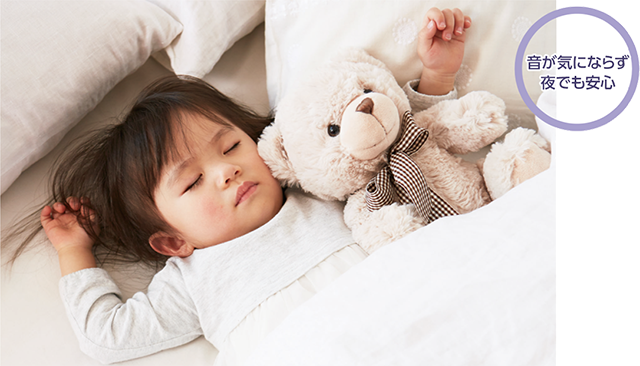 - 三菱のDCブラシレスモーターで運転音を抑えます。