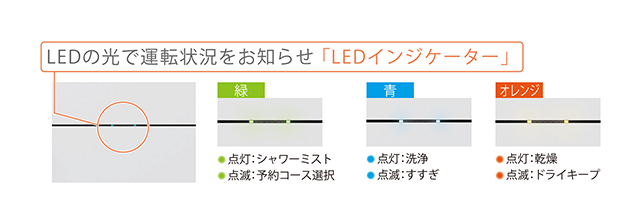 - 運転状況をLEDの光と色でお知らせします。