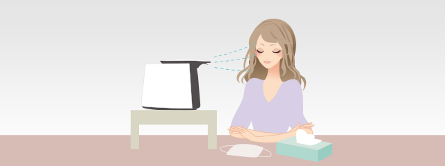 寝ている間中、顔の周りにスチームを届け、のどや鼻を直接潤します。
