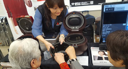 レンジグリル、IHクッキングヒーター、ジャー炊飯器、TV、衣類乾燥除湿機、掃除機を展示し、参加者にそれぞれの商品を順番に体験していただきました。