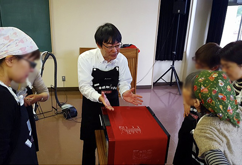 和歌山県点字図書館で開催された視覚障がい者向けイベント「補装具・日常生活用具研修会」に併設して、「三菱電機らく楽アシスト家電説明会」を開催しました。