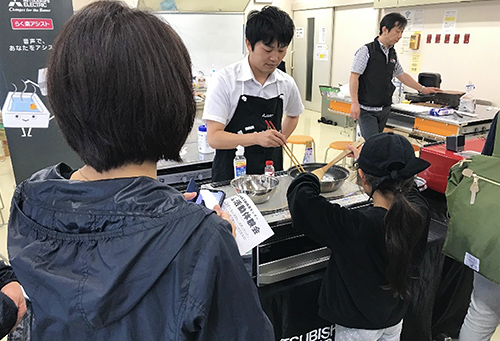 特に、レンジグリル、ジャー炊飯器、IHクッキングヒーターのコーナーでは調理体験や試食を楽しんでいただきました。