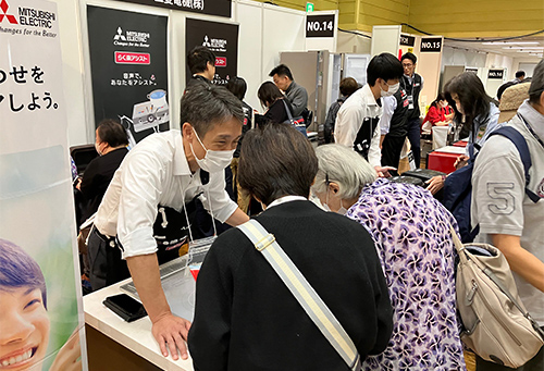 既に三菱の商品を使ってくださっている方も多く来場され、音声ガイダンス付き商品を更に増やして欲しいとのご意見や、らく楽アシストの取組みを応援する声も多数いただきました。