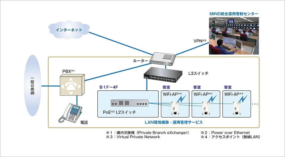 2018年7月に同社が軽井沢にリゾート型ホテル「ルグラン軽井沢ホテル&リゾート」をオープンした際も、引き続きMINDがネットワークから電話線の構築、運用保守を担いました。「ルグラン軽井沢ホテル&リゾートは11棟あり、基幹ネットワークの敷設作業も発生しましたが、設計から構築までMINDに任せたことで作業はスムーズに進みました」と児玉氏は語ります。