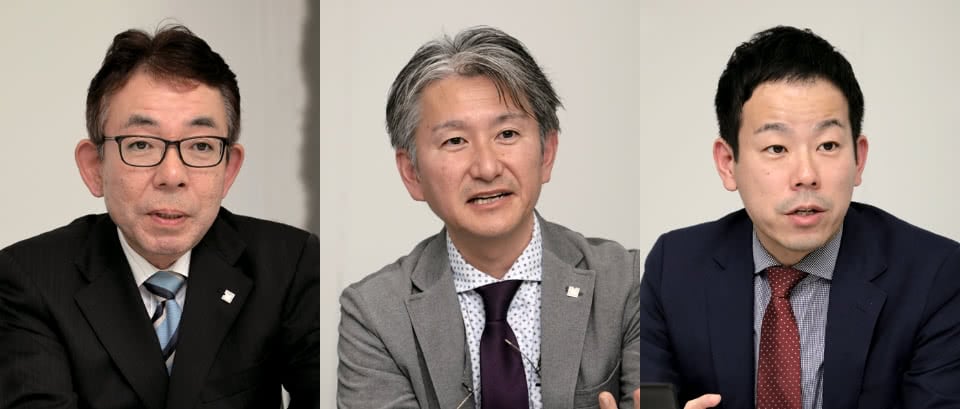 常務執行役員 GCソリューション サー ビス本部本部長 中尾 是幸 氏(左) ソリューション企画営 業本部ソリューション 企画部部長 市場 利一 氏(中) ソリューション企画営 業本部ソリューション 企画部コンサルティング室データ分析官 渡邉 啓介 氏(右)
