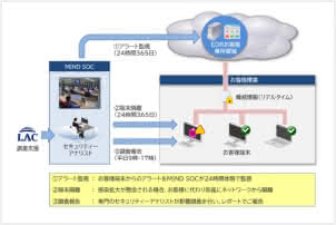 また、システムによる検知には誤検知が伴います。アラートを受け取ってからそれが本当に危険な状態であるかどうかをMINDのセキュリティアナリストがログを見て分析します。