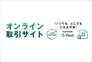24時間365日、いつでもWebで見積の取得から注文まで行うことができます。また、支払は銀行振込と企業間決済サービス「Paid」に対応しています。