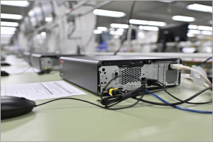 メルコテクノ横浜のキッティングサービスの特長は、広い作業エリアと効率的かつ高い作業品質を有していることにあります。本社には2つの工場を擁し、作業エリアの面積は合計2,000平方メートル、テニスコートで8面分の広さがあります。物理的なセキュリティー対策として、構内への入構時の立入確認、建屋とキッティングエリアの施錠、作業関係者のみ入室可とする運用を実施しています。