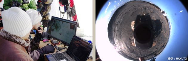 右:ローバーの360度カメラで撮影した映像。このような高解像度の映像が本番でも送られてくる予定。(提供:HAKUTO)