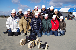 2014年12月18日(木)、浜松市の中田島砂丘で、民間月レース「グーグルルナXプライズ」に参加する日本チーム「ハクト」が走行試験を行った。レースでは2016年末までに月にローバーを送り込み、①500m走ること、②高解像度の動画・静止画データを地球に送信すること、の条件を一番早く達成したチームが賞金2000万ドルをゲットできる。世界18チームが参戦中。日本チーム「ハクト」は月に打ち上げる準備がほぼ整った「中間賞」候補の5チームに選ばれている優良チーム。中間賞を獲得するための走行試験が審査員と報道陣を前に、この日公開されたのだ。