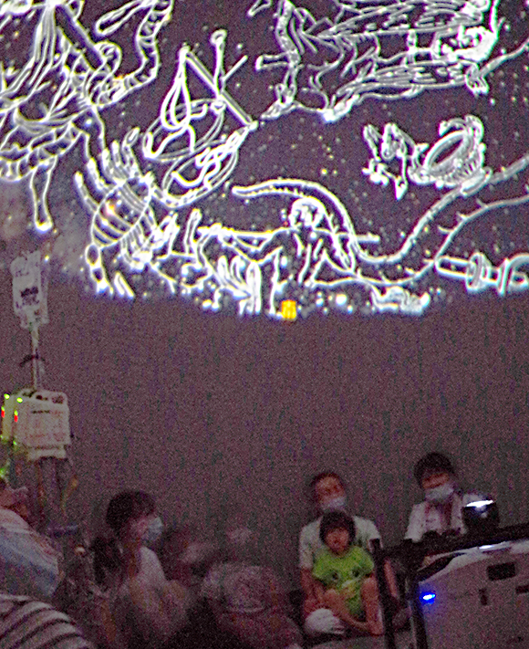 「長期入院している子供たちに少しでもリラックスしてほしいと、クリスマスなど季節の行事などは行ってきましたが、外部から人を受け入れての行事は感染症が心配で行っていなかった。でもやってみたら、どうしてやってこなかったんだろうと(笑)」と犬飼先生。「プラネタリウムで子供が嬉しいのはもちろん、医者や看護スタッフらと一緒に楽しめる意味も大きい。子供たちにとって特に医者は痛いことをする人。つまり上下関係だったのが対等な関係になります。またお母さんも、どこにも連れていけない子供と一緒に体験できると喜びます。みんなで星を見上げて同じ体験ができるのが、ほかのワークショップにはない点だと思います」。犬飼医師は他の病院にもプラネタリウムの良さを伝え、その輪が確実に広がっているという。