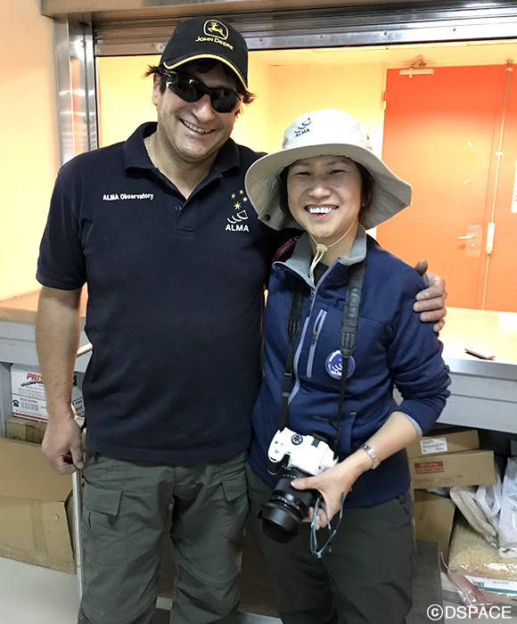 「チリは乾燥して、標高が高いところに開けた土地があり、天文学に適した天然資源を持っている。アルマで新しいことを学ぶ日々を心から楽しんでいるよ。アルマだけでなく30m級の巨大望遠鏡が二つも計画され、これからチリで新しい天文学がどんどん進み、科学に大きく貢献できることをチリ人として誇りに思っている」と話してくれた。