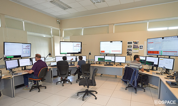 天文学者と言えば、夜な夜な望遠鏡をのぞき、天体を観測して論文を書くというイメージを持っているかもしれない。しかし、アルマ望遠鏡の観測最前線でそのイメージは覆される。まず、望遠鏡を動かし観測を実行するコントロールルーム(下の写真)には燦燦と陽の光が差し込んでいる!つまり昼でも観測できる(可視光の望遠鏡は夜しか観測できないが電波望遠鏡は24時間観測可能)。そして、モニター画面にはグラフや数字の羅列が表示され、天体画像は映し出されない。一見すると、ここが66台もの望遠鏡を動かし宇宙を観測中の「天文学の現場」とはわからないだろう。