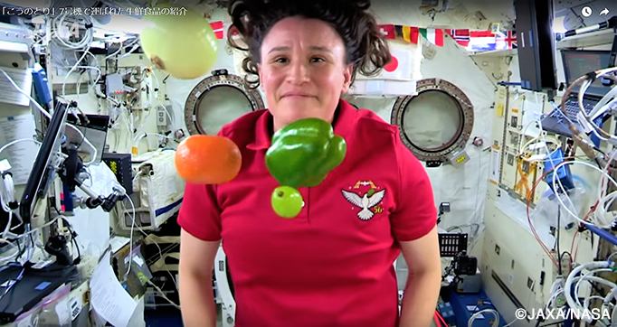 NASAチャンセラー飛行士は、「新鮮なフルーツや野菜は我々の健康や雰囲気をよくしてくれるだけではなく、幸せを感じさせてくれます。今日はさっそくチーズバーガーナイトを開きます」と感謝をのべつつ、「洪水や地震による被害を受けた方たちや家族が健康で早く復興することを願う」と被災地にメッセージを送った。最後にシャインマスカットをパクっと口にし「わぁ!美味しい」と満面の笑み(金井飛行士は宇宙飛行士候補者クラスでチャンセラー飛行士と同級生。彼女は大の食いしん坊らしい!)。生産者の方たちもさぞかし喜んだことだろう。