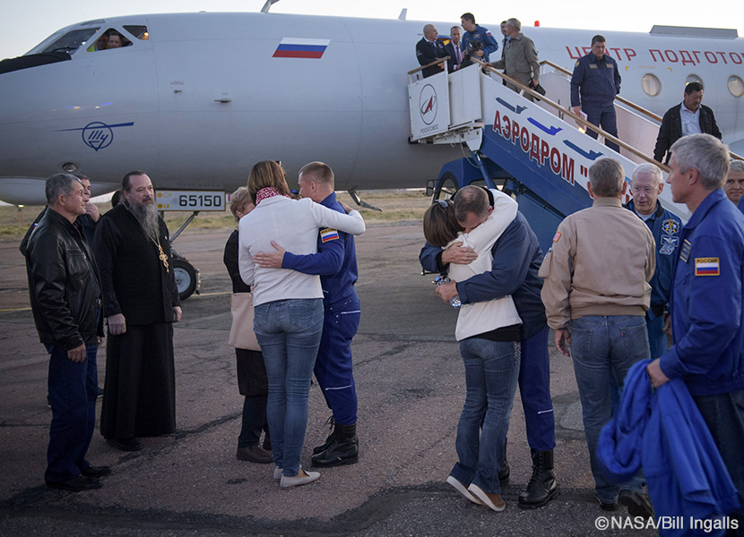 ソユーズ宇宙船に搭乗していたNASAニック・ヘイグ飛行士は今回が初飛行。空軍のテストパイロットだっただけに、緊急時の心構えには慣れていたとNASAテレビのインタビューで語った。だが、窓の外から弧を描く地球と漆黒の宇宙空間を見た時はほろ苦い気持ち(bitter & sweet)になったという。