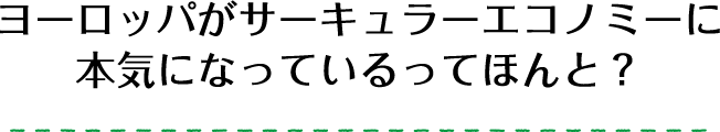 欧米では、資源の問題やリサイクルを環境問題として考えるのではなく、経済や社会の土台にして据えようと動き出しています。つまり、廃棄物はゴミではなく資源であり、そこからビジネスを作り出せるという考え方です。