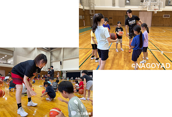 名古屋製作所を拠点に活動し、日本のトップリーグに所属するバスケットボールチーム名古屋ダイヤモンドドルフィンズと三菱電機コアラーズ。年間を通じて様々な地域活動を行っています。その一つとして、地域の子供たちを対象にしたバスケットボール教室を開催しています。