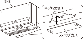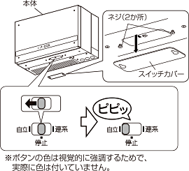1. 本体下面のネジ(2か所)をコインなどを使ってゆるめてスイッチカバーを手前にずらしてはずし、運転切換スイッチを「自立」にします。
