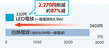 1日6時間、365日使用。電力料金目安単価22円/kWh(税込)当社白熱電球 消費電力54W
