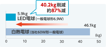 1日6時間、365日使用。CO2排出係数0.39kg-CO2/kWh当社白熱電球 消費電力54W