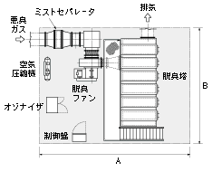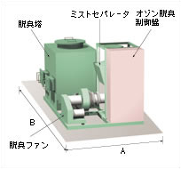 | 脱臭塔(*) | オゾナイザ | 脱臭ファン | A | B | H(**) | |