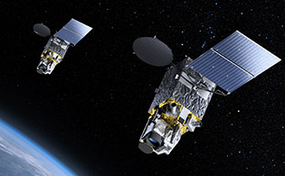 はるか上空から地上の様子を観察し、災害監視、気象予報などさまざまな事象の観測に役立っているのが地球観測衛星です。三菱電機は、地球資源衛星ふよう1号をはじめとした観測衛星の開発に携わるとともに、衛星から送られる全地球規模の観測データの処理設備や、衛星搭載用の各種センサも開発しています。