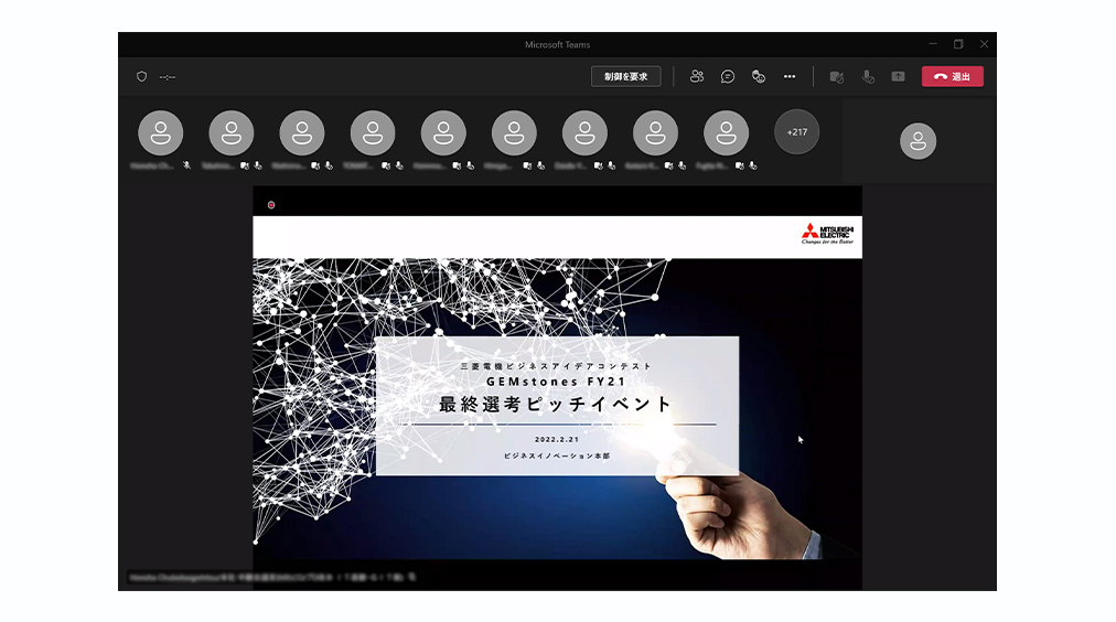 283件のアイデアはまずトップ45まで絞り込まれ、2022年1月15日に最終選考に進出する7件のアイデアが発表された。最終選考は「ピッチイベント」形式で行われた。ピッチイベントとは、起業家が投資家などに対して、サービスや製品について短時間でプレゼンテーションするものだ。ピッチイベントでは、市川さんを含む社内審査員4名に加え、前出の守屋さん、慶應義塾大学SDM教授の白坂成功さん、MEイノベーションファンドの林昇平さん、新津啓司さんの4名の社外審査員が審査にあたった。