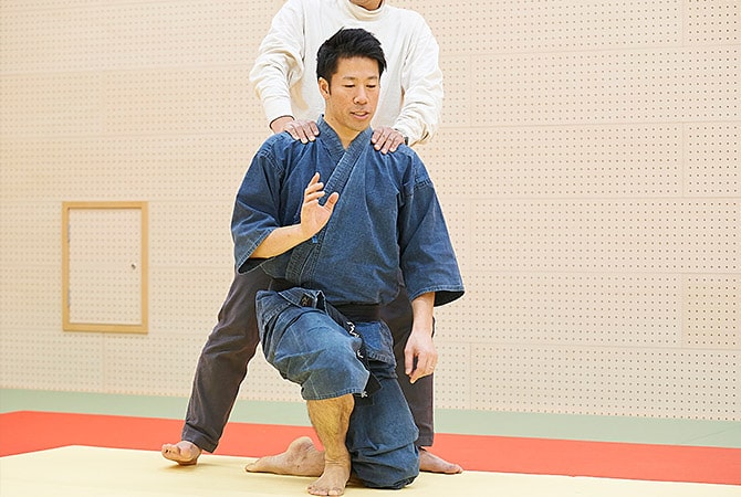 人が押さえ込んでいるので立ち上がるのは大変だという思い込みを取り払い、身体への信頼を大切にする。こうすることで緊張の少ない楽な状態が作れます。力を付け足そうとするのではなく、“引き算の発想”に古武術の面白さがあると思います。
