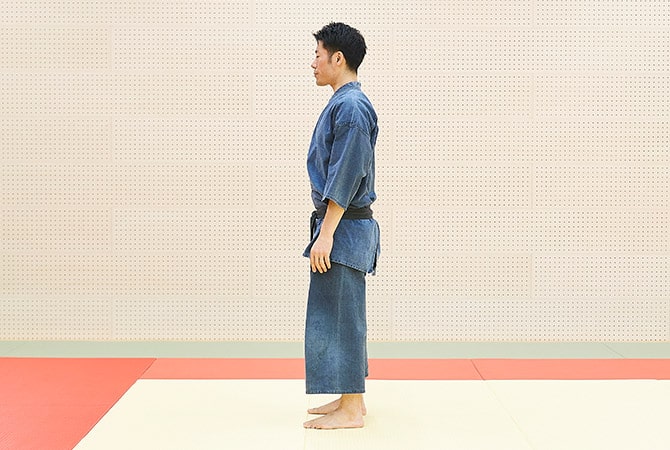 「骨盤を後傾させ仙骨の先端側を前に出し、深い呼吸でへそより下の内部から充実感を生み出します。それが満ちたままに、上半身の力みを楽にすることで「上虚下実」と呼ばれる上半身と下半身の繋がりが良い姿勢を保てます。