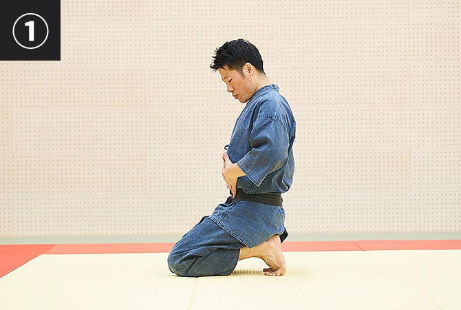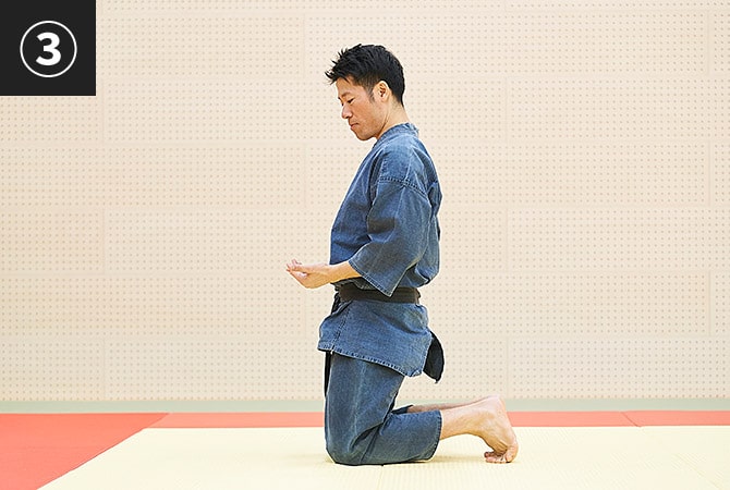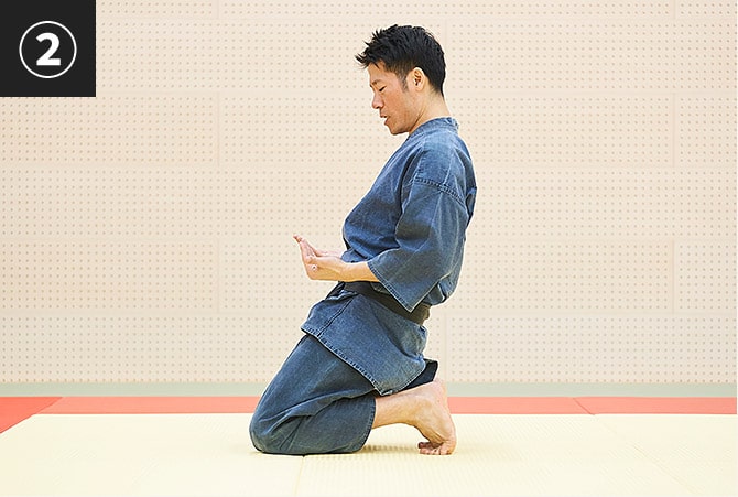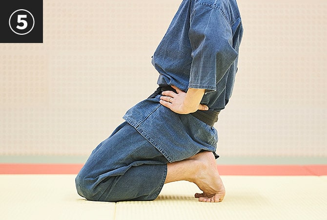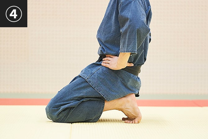 まずは林先生が「丹田起こし」と名付けた方法です。足の指を立てて座り、踵の上にお尻が乗る状態を作ります。