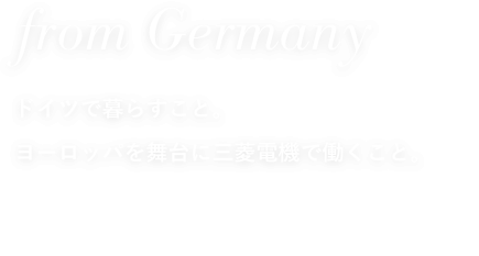 MEU-GERではドイツはもちろん欧州各国の人々と触れ合う機会があり、現在コロナ禍のため直接会う機会は限定されていますが、ヨーロッパにいることで外から見たアジアや日本の姿を知り、各国・地域の国民性や商習慣、人間関係の作り方などを肌で学びとり、そのような環境で生活して仕事をする刺激と楽しさとやりがいを感じている日々です。